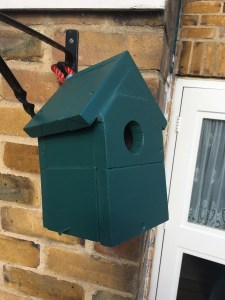 This hand made sturdy birdhouse is made from reclaimed wood. One side opens to allow for cleaning and observation