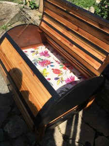 has been re-purposed to a one off quirky storage unit. It has a lockable lid