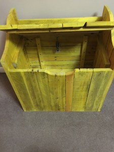 Rustic garden storage box with spring loaded hinge