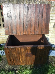 This is a handmade mobile storage that has been made entirely from reclaimed work. It has a ply carcass that has been coated with two coats of weather resistant paint, and been classed with wood that have had three coats of Ronseal weather resistant stain that offer a 10 year weather proof guarantee. Even the beautiful grain of the wood shines through.