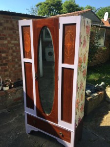 This is vintage mid century wardrobe that has been Upcycled in vibrant floral colours both inside and outside. It is, as is all furniture of this age, all wood, not mdf or chipboard.