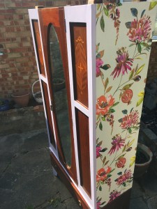 This is vintage mid century wardrobe that has been Upcycled in vibrant floral colours both inside and outside. It is, as is all furniture of this age, all wood, not mdf or chipboard.