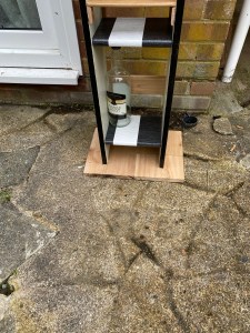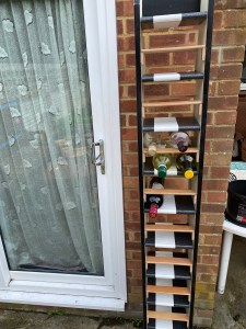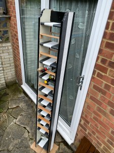 This is a a re-purposed piece of furniture that was once a CD rack, but has now been turned into a tower wine rack