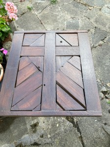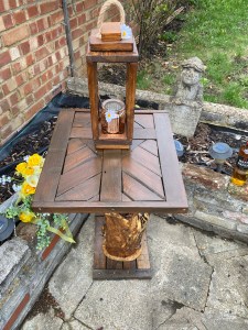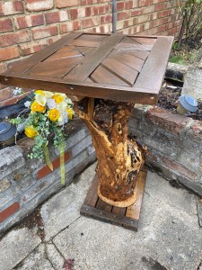 This is a one off piece of garden furniture, it is made entirely from reclaimed wood. With a hand crafted crucifix designed table top.