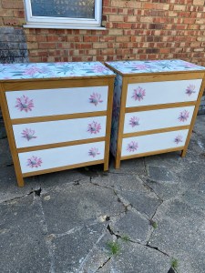 A pair of solid wood chest of draws that have been up cycled into a vibrant piece of furniture that would brightens up any room. With deep 17cm draws that are more than adequate