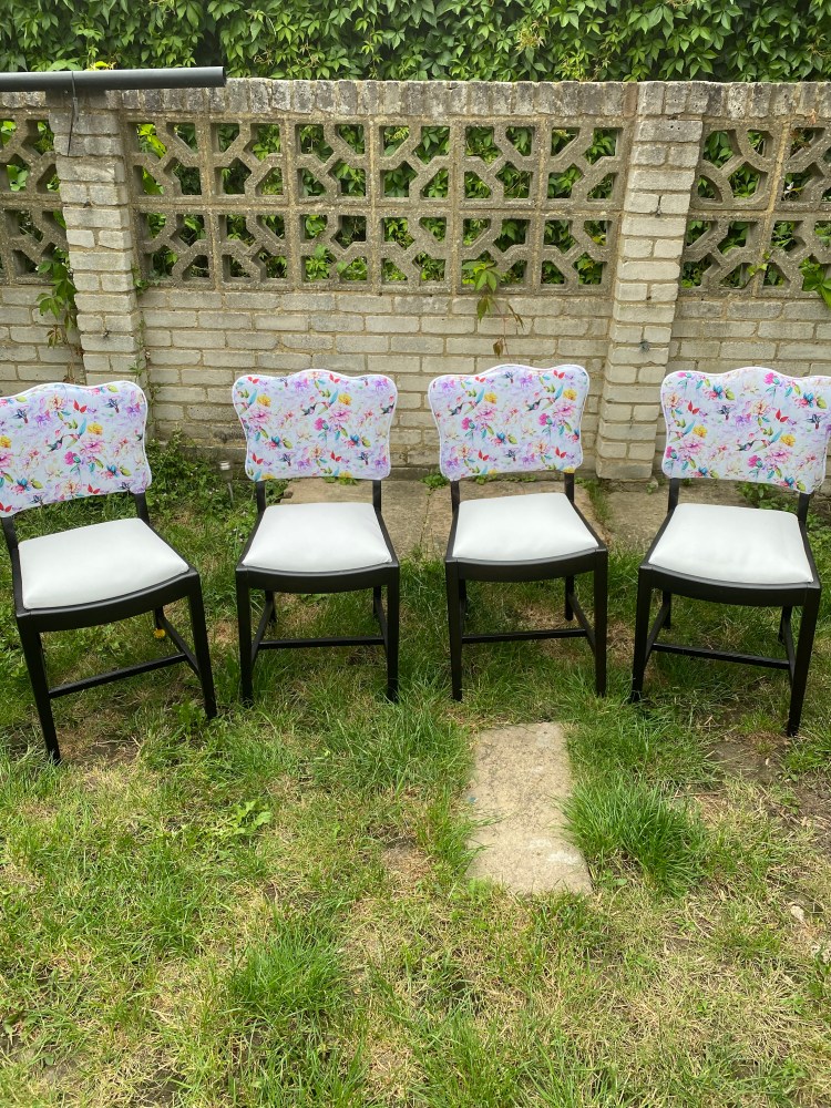 This is a set of four mid century vintage chairs. They have been up-cycled to an exquisite standard.