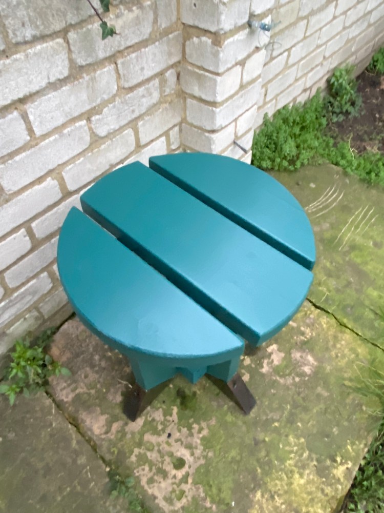 and repurposed into a heavy duty garden stool/ small table.designed to be dual purpose either stool or small table