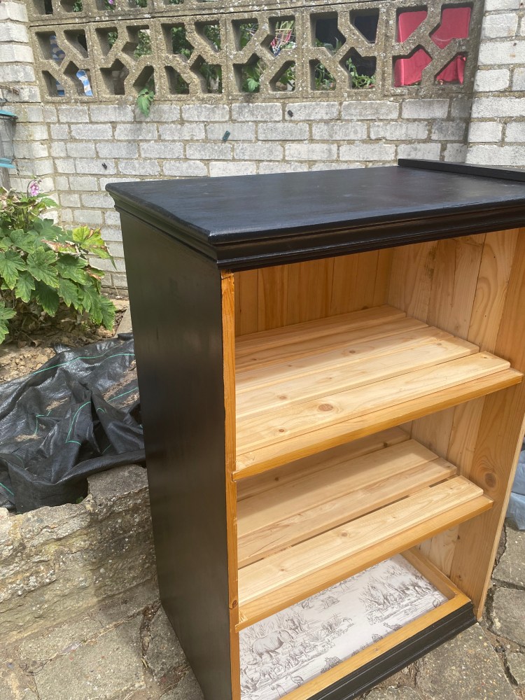 It has been hand painted black on the outside and the inside has been left in it’s natural shade.