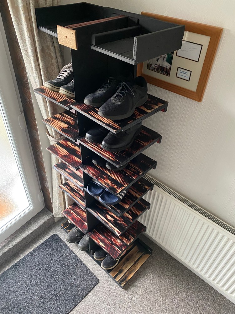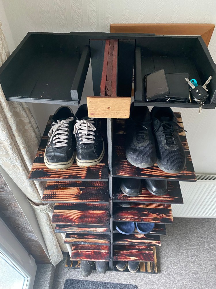 Handmade tower shoe rack