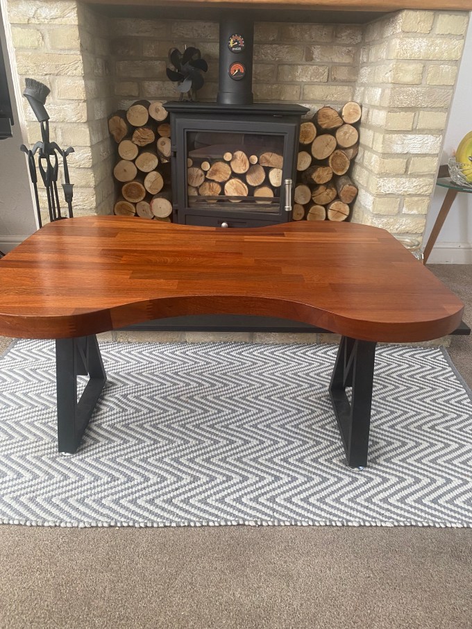The top is a solid 40mm thick what seems to be walnut